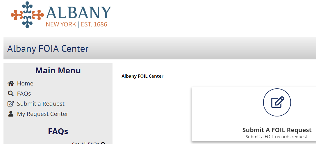 "The City of Albany complies with New York State Freedom of Information Law (FOIL), providing transparency with its legislative actions, and providing the public with access to its government records. By Common Council Ordinance, FOIL requests are accepted by the City Clerk-Albany's official keeper of government records and designated Records Access Officer (RAO). "