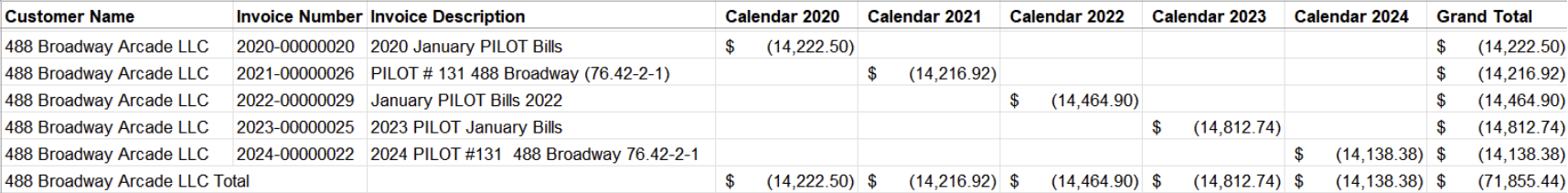 - any PILOTs that were cancelled
