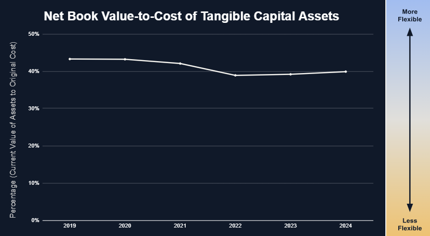This indicates how well the city is maintaining its infrastructure. A low value means assets are aging and wearing out.