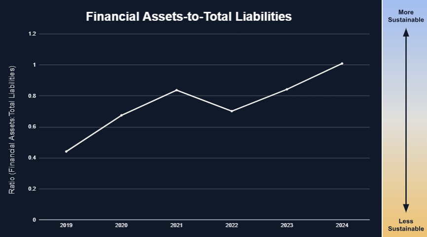 This ratio shows whether the city has enough liquid financial resources to cover what it owes. A ratio below 1 means it would not be able to pay off its liabilities using only its financial assets, which is a sign of financial stress.