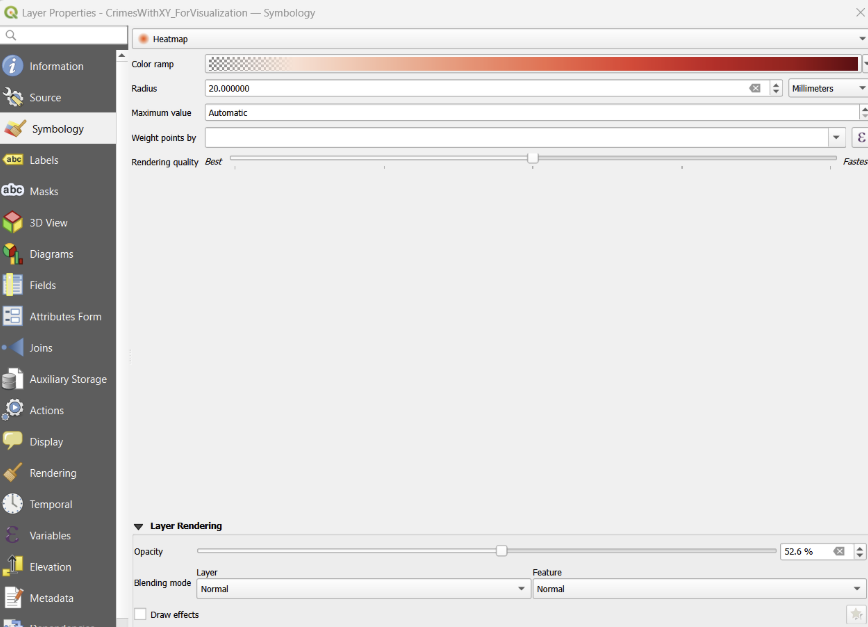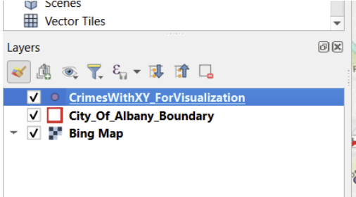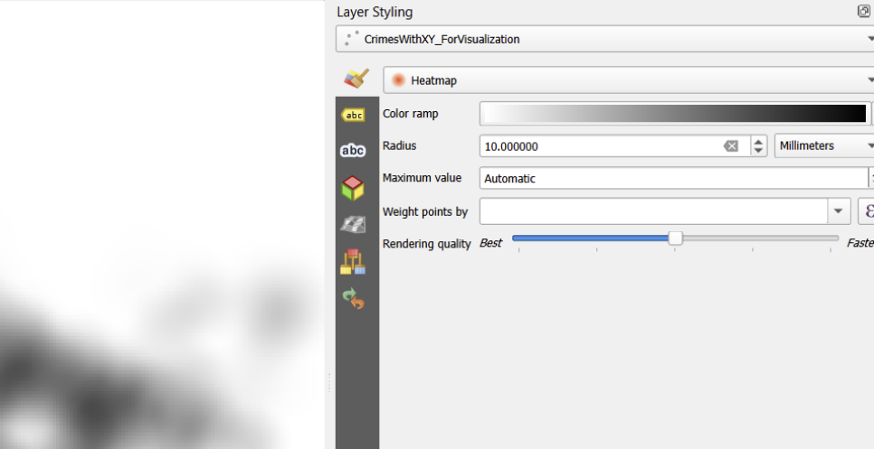 Select the CrimesWithXY_ForVisualization layer and hit the Open Layer Styling Panel button